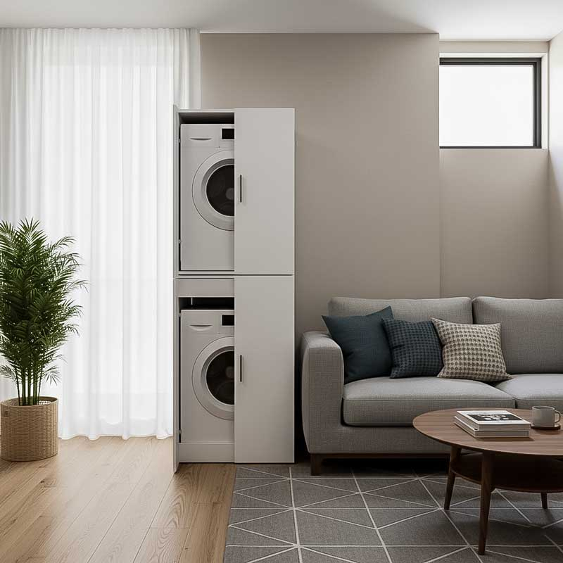 Optimizați spațiul din locuința dumneavoastră cu acest dulap versatil de la LUCMI, proiectat special pentru a găzdui și ascunde cu eleganță mașina de spălat și uscătorul. Realizat din PAL de înaltă calitate, acest dulap dispune de un raft spațios și 4 uși pentru acces ușor și organizare eficientă. Designul alb mat conferă un aspect curat și modern, integrându-se armonios în orice stil de amenajare interioară. Cu dimensiunile de 70.6 x 66.8 x 190.6 cm, acest dulap este soluția practică pentru a crea un spațiu funcțional și estetic în zona dedicată mașinii de spălat și uscătorului.