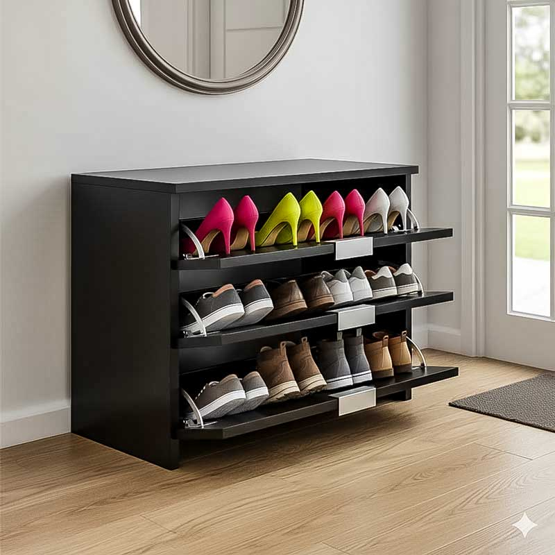 Organizează-ți încălțămintea cu stil! Fabricat din PAL de 18 mm cu cant ABS durabil, acest dulap compact are 3 rafturi practice și un design modern, potrivit pentru orice hol sau dormitor. Dimensiuni ideale: 584 x 360 x 430 mm.